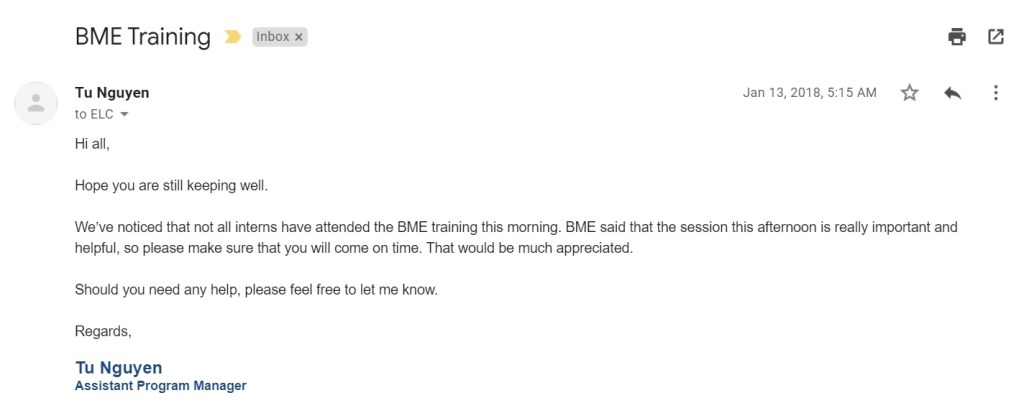 The afternoon class was where things dragged at times. At first it was further teacher training. Afterwards it would be about the Vietnamese language, other times it would be a survival guide to Hanoi, or maybe it would be a powerpoint on BME and getting paperwork done for them. These weren’t bad per se but the final hour was when I would typically lose focus.