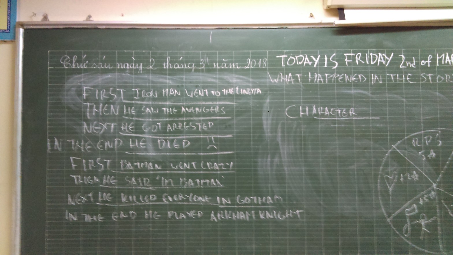 17-01-2018 Wednesday was very much a day of two halves. On one hand, I had Thanh Liệt, a school that was not all that modern and noisy as fuck but had a strong TA in the form of Hien. On the other, Co Nhue 2B, a school with great banter between myself, Niamh, Mia andContinue reading “Wednesday teaching in Thanh Liệt”