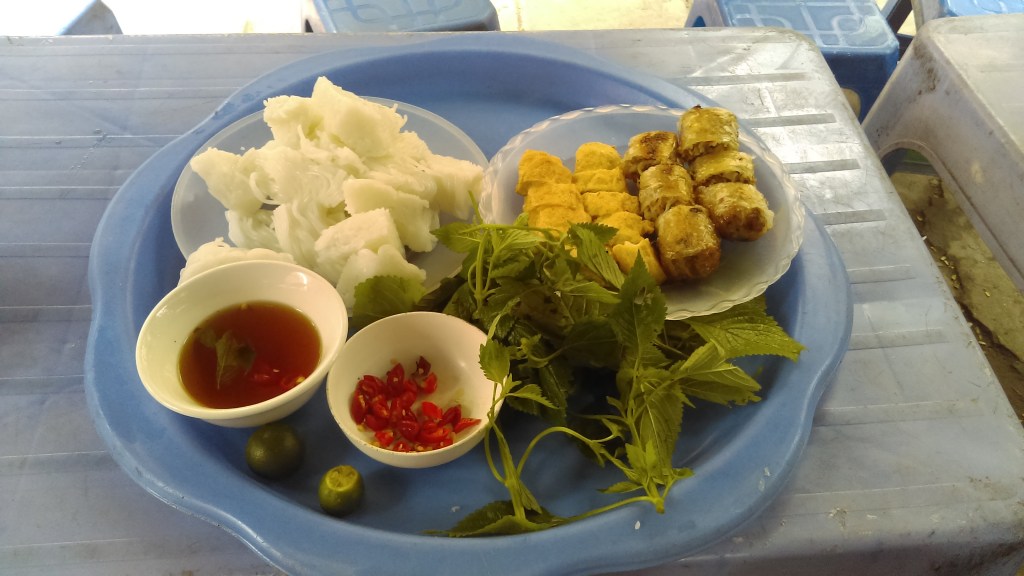Of all the street food places to meet up after morning classes, this one was probably the most frequently visited. I would be here at least twice a week during afternoons eating (no exaggeration here) the best spring rolls in the world. Not even Tony in the Thai House could work up a rice paper version quite like this (and his are masterpieces!), with just the right blend of vegetables and fish sauce side. Tiny lime like fruits. chillies, a plethora of salad leaves and cold vermicelli noodles are presented on a large blue bowl, and it all made up to a hearty, but healthy meal. If you are reading from abroad, try Vietnamese style spring rolls if you haven’t already. I feel they take the gold, with Thai and Chinese getting silver and bronze.