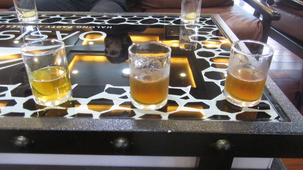 Returning to the interior, there was a dancefloor area with mixing desk, a lot of dining tables near the back, and a few sofas to relax and unwind. We were offered something that tasted like peach schnapps, and then had a meal of a few tasty Vietnamese dishes. I went with a yellow curry because it was the first time I had actually seen this in Vietnam! Shellfish and rice were all around as well, and I had a few oysters and clams too.