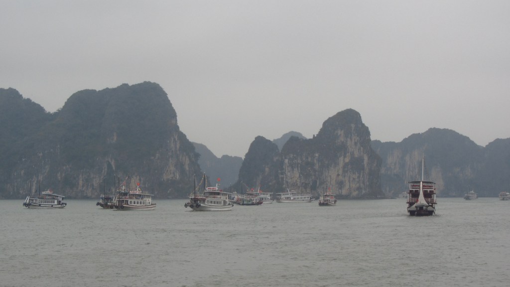 The bus departed, escaping the misty Hanoi, but also taking a while to get to Ha Long. Despite being around 170km away, it took a good few hours and a stop over to get to the bay. In Ireland that distance would be covered in just under 90 minutes. It didn’t help that we stopped at a pearl shop nearby. I had got used to these sort of places appearing midway through a trip from the Jade factories in Beijing. They only really exist to rip off tourists, and this felt like no exception. Despite having nice pearl collection, I knew I would find better deals in Hanoi or at Ha Long. Maybe next time, tourist trap!