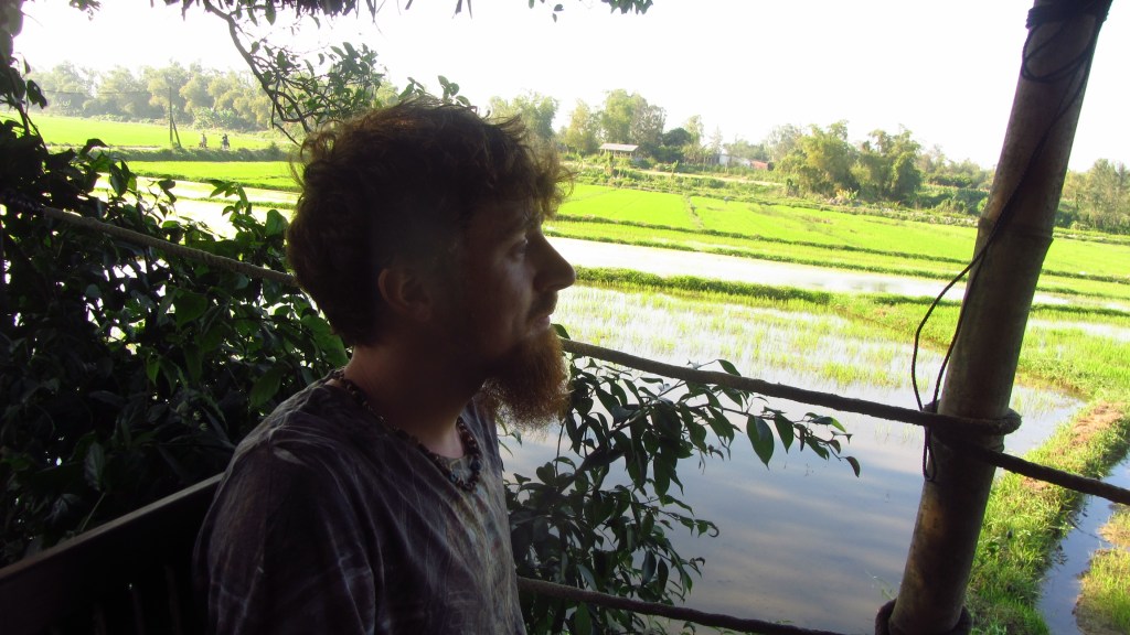 We arrived at La Terrazza homestay and I was just hanging around outside for a bit taking in the….Vietnamese-ness of it all. Rice fields, palm trees, the odd motorbike crossing the field on a thin path, and mosquitos around. There was even a water buffalo, just chilling out and eating grass! The house itself was modern, with plenty of rooms and bathrooms. The owner was a friendly Italian who had settled down here and was happy running a guesthouse and farming the land with rice. Johnny was having plenty of discussions with him. Cian was absolutely loving it and the relaxed nature compared to Đà Nẵng was well suited. Some future stays could be had in places like this.
