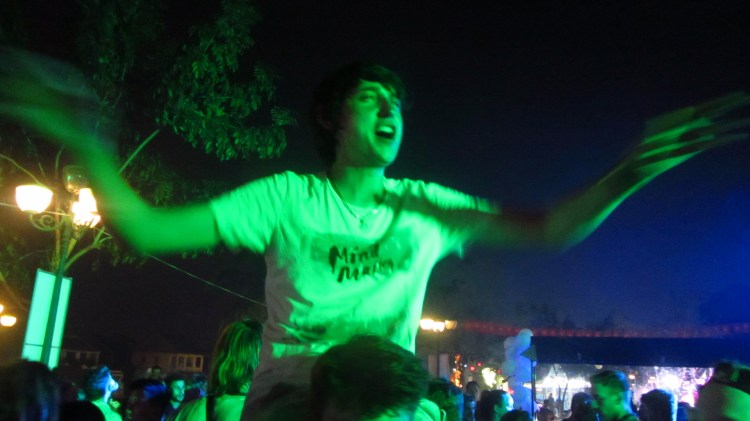 After a good few hours on the sesh, it was messy but we managed to see that something was being prepared for midnight. By the river, a massive pile of fireworks were being arranged. For a town of its size, these looked like fireworks suited to a city ten times the size. While people were still roaring and chatting, a countdown had begun, from 10-1 in Vietnamese…..
