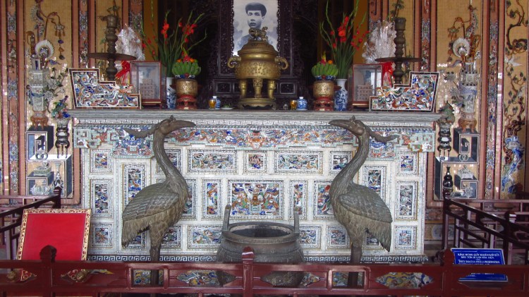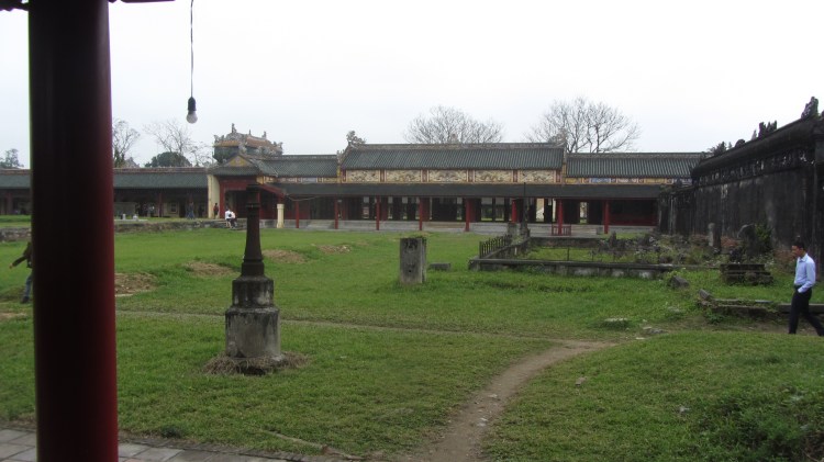 Comparisons to Bejing’s Forbidden city are common with the imperial city, both being large square complexes of oriental buildings surrounded by a moat and with a real feeling of ancient royalty, emperors and opulence. However, the key differences were apparent at a glance and more obvious the further into the palace you went; Beijing’s has a clear red colour palette and an immaculate, untouched appearance, ready to have as many visitors and guests as possible. Hue’s meanwhile has had a rough time with the Tet offensive; colours can feel washed out, some walls are entirely missing, and bullet holes riddled some of the palace floors. This was very much a frequently visited city that has seen many stories and tells them with what you find as you walk around. That is not to say its all damaged goods. There were still plenty of beautiful structures and rituals happening around the palace grounds. Some singing buddha bells and altars were all around and the lanterns were hanging around the structures.