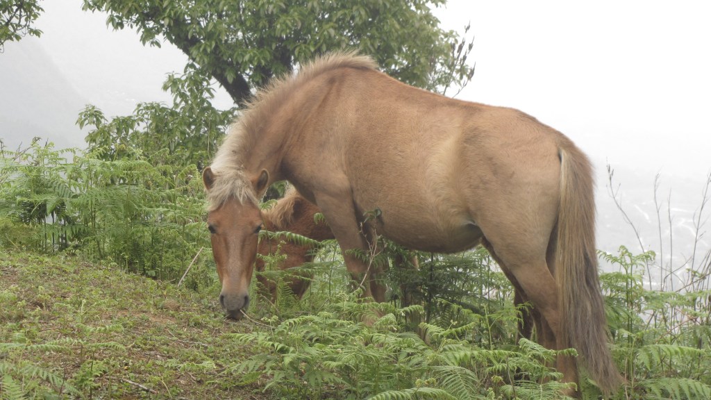 After the first peak was a stunning view of the valley on the right. The mountain ridge was so tall and the valley so deep it was mesmerizing and intimidating at the same time. Rice fields could be seen at the bottom. Each subsequent walk, climb and descent revealed something else worth taking pictures of. Free range wildlife, the odd scooter, greenery and fields everywhere you could see.
