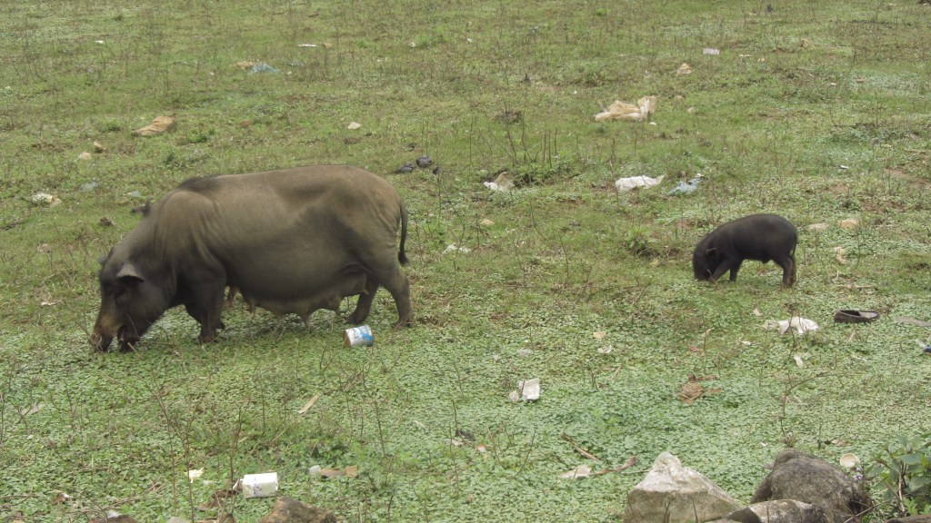 The drop between the mountain peaks and the valley below was the highest I had ever seen. It felt like a giant wall that seemed inconceivable to cross without using a helicopter or a plane. Indeed, this area was close to the Chinese border and it would be understandable to have ranges like this make up a natural border between the two countries. On this side of the border at least, everything between the mountains to the river consisted of rice fields and small huts. Animals would appear on the road, from donkeys to buffalo’s, ducks and boars. It was all very rural and a far cry from the bustling city streets of Hanoi.
