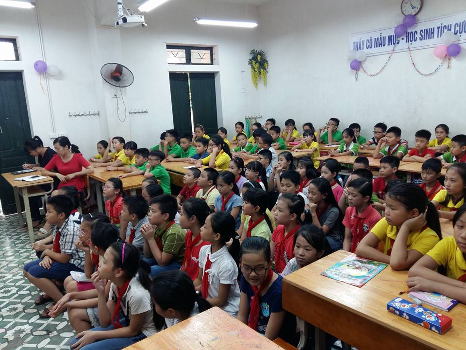 Anyway when all five of us were in the taxi we were squeezed up and generally sat in order of who was getting out first. I was second, so I usually got a window seat. We would drive through the busy city streets this time, not going to the sticks like the previous journeys. The general Thanh Xuan and Hoang Mai areas had a lot of primary schools, especially around the Tô Lịch River, where Thanh Liệt was located. It turned out to have 2 schools, Thanh Liệt A & B. Sophie was dropped off at A while I was dropped off at B. I was on my own at this school like Cu Khoi. With the late taxi drop off, the students were already out in the courtyard running around, playing keepie up, chasing, playing football and messing with pokemon cards. It was a chaotic run up to the teachers room, but I made it.